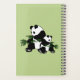 Panda mama est assis à manger du bambou pendant que bébé fait comme bébé panda voit