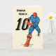 Bientôt ton petit-fils aura dix ans et là tu as la carte extraordinaire dont tu as besoin pour le féliciter pour son 10e anniversaire. Un super-héros fort portant un costume bleu et rouge, vient courir avec un grand nombre.