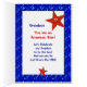 Niedliche rote Sterne und rote Sterne, die auf einem blauen Himmel voller Lichter aus dem Feuerwerk der Unabhängigkeitstag stehen, sind ein lustiges Grußauto für Ihren Enkel, der ein amerikanischer Star ist. Text kann mit den angegebenen Vorlagen personalisiert werden. Originelle Kunst und Design von Anura Design Studio.