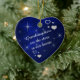 Das ist ein wunderbarer Weihnachtsschmuck für einen Großeltern, der einer Enkelin etwas geben kann. Es zeichnet sich durch silberne Schneeflocke, Herz- und Sternbilder vor tiefblauem Gradientenhintergrund aus. In der Mitte befindet sich Ihr personalisierter Text in Weiß. Derzeit steht im Text "Enkeltöchter sind die Sterne in unseren Herzen". Der Text ist vollständig anpassbar, sodass Sie ihn sagen lassen können, was Sie wollen. Die Rückseite des Ornaments hat das gleiche Bild mit ihrem Namen. Dies ist ein besonderes Geschenk für Weihnachten, ihren Geburtstag oder Abschluss, das Ihre Enkelin für immer schätze.