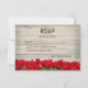 carte de réponse faire-part de mariage, avec un mur de grange patiné rustique, frondée de tulipes rouge vif