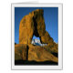 Ein Blick durch den Granitbogen in den Alabama Hügeln in der Nähe von Lone Pine, Kalifornien. Ein klarer Blick auf den fernen Gipfel des Piniengipfels, nahe dem Whitney, dem höchsten Punkt des Kontinents USA, mit +14.497 ft. Höhe.