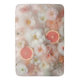 Delikate Blüten und geschnittene Grapefruits sind kunstvoll auf einem weichen, hellrosa Hintergrund mit schwebenden Perlen angeordnet