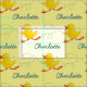 Spaß beim Entzücken der Vogelkunst und Name Grafikgewebe. Ideal für eine ganz besondere Nähherstellung für Ostern. Niedliche gelbe Entenlinge mit aquamarinem Namenstext. Personalisieren Sie mit Ihrem eigenen Namen, derzeit liest Charlotte. Einzigartig Illustriert und von Sarah Trett entworfen.
