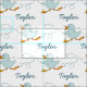Spaß beim Entzücken der Vogelkunst und Name Grafikgewebe. Ideal für eine ganz besondere Nähherstellung für Ostern. Niedliche hellblaue Entenlings mit aquamarinem Namenstext. Personalisieren Sie mit Ihrem eigenen Namen, aktuell liest Taylor. Einzigartig Illustriert und von Sarah Trett entworfen.