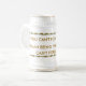 dieses ist ein 22oz. Stein, der weiß/Gold mit einem Sprichwort ist, das im Gold ist, beschriftet.
