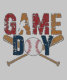 Un graphisme audacieux et minimaliste "Game Day" avec un design en détresse. La lettre "O" est remplacée par un baseball détaillé, tandis que les chauves-souris croisées sous le mot "Game" soulignent le thème sportif. La silhouette d'une pâte en action renforce l'attrait dynamique, rendant ce design parfait pour les vêtements et accessoires de jour de jeu.