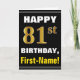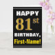 Gras, Noir, Faux Or 81e anniversaire avec carte de
