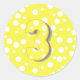 Amusez-vous en demandant à l'enfant de trois ans de trouver les trois sur ces autocollants numériques à leur troisième anniversaire. Les 3 et l'arrière - plan sont décorés de pois blancs sur un arrière - plan jaune. Les trois sont dessinés dans une teinte plus foncée de jaune et ont une ombre à droite et en bas du nombre, pour l'aider à se distinguer. Merci pour faire du shopping CherylsArt sur Zazzle.