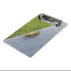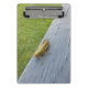 Eine Mini-Zwischenablage, mit einem Bild, eines Grasshoppers auf einem Porch-Railing, auf der Vorderseite und auf der Rückseite, davon.