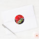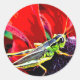 Dieser farbenfrohe Aufkleber ist mit einem glänzenden, grünen, gelben und schwarzen Grasshopper in der lila Mitte einer Blume mit prächtigen roten Blütenblättern bestückt.