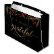 Make your holiday gifting truly memorable with this elegant black gift bag featuring illustrated winter greenery, red berries, and a shimmering gold script that reads “grateful.” Designed for businesses who want to elevate their seasonal packaging, this bag includes customizable text for your company name and year. Perfect for corporate gifting, client appreciation, boutique packaging, employee presents, and festive retail wrapping. A sophisticated, cohesive way to express gratitude during the holiday season.