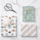 Drei flache Blätter Packpapier: je eine von pastellfarbenen Kürbissen und Gourten, schmackhafte Kürbis und Gourten und Pastellstreifen.