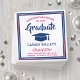 Fügen Sie eine elegante personalisierte Touch zu Uni- oder High School-Abschluss-Party-Dekorationen mit diesen benutzerdefinierten rot, weiß und blau Papier Servietten. Der gesamte Text ist einfach anzupassen. Das Design besticht durch einen weißen Hintergrund, eine blaue Mörtel-Kappe, eine stilvolle moderne Typografie und handgeschriebene Schriftzeichen-Kalligraphie. Herzlichen Glückwunsch an den Absolventen!