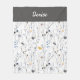 Grau Blaue Aquarell-Wildblumen-Name Fleecedecke