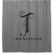 Einfach, aber raffiniert und elegant. Grauer Vorhang mit einem schönen T Monogramm und Personalisierung mit Nachnamen.
