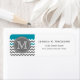 Cooles niedliches geometrisches, aquamarines , grau-weißes Zickzack-Zickzack Muster mit grauem Typenschild für Ihren individuellen Monogramm-Anfangsbuchstaben. Chic mit Monogramm, moderne Adressetiketten.