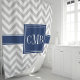 Grau und Navy Blue Zickzack Monogram Duschvorhang