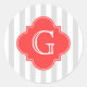 Grau-weiße Streifen Korallenrot-Monogramm-Etikett Runder Aufkleber