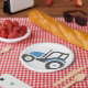 Ein graublauer Traktor, wie man ihn auf einem Bauernhof findet. Dieses Design sieht wirklich effektiv aus bei diesen Paper-Tellern