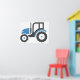 Ein graublauer Traktor, wie man ihn auf einem Bauernhof finden würde. Dieses Design sieht auf diesem Poster wirklich effektiv aus