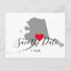 Graue Alaska-Kartenform mit Save the Date Design. Passen Sie die Farbe des Staat an, um die Farbe Ihrer Hochzeitsfarben anzupassen. Lass deinen Freunden und Verwandten den Ort deiner Hochzeit mit einem Herztextsymbol, das du bewegen kannst. Die modernen und eleganten Kalligraphie-Schriftart-Stile sind individuell anpassbar.