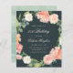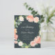 Moderne blumengeschmückte Geburtstagsfeier mit blütenrosa und pfirsichfarbenen Pfannkuchen und Rose mit Eukalyptus-Blätter auf dunkelgrauem Hintergrund. Ideal für Frühjahr- oder Sommergeburtstage. Im Rahmen der Auswahl des Haushalts hier auf Zazzle kommen diese Einladungen in begrenzter Größe und in Papiervorräten. Wenn Sie eine andere Größe oder einen anderen Papiervorrat benötigen, kann dieses Design mit dem Design Transfer Tool für weitere Optionen in ein Standardformat übertragen werden.