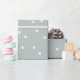 Weiße Polka-Punkte mit kleineren, hellgrünen Punkten im Inneren, alle auf grauem Hintergrund