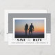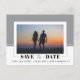 Moderne graue Blockhochzeit Speichern Sie das Date Foto Postcard. Der obere Teil dieses Save the Date-Designs ist grau, der untere Teil weiß mit dem Text. Es enthält auch ein Foto des Paares.