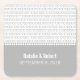 Lass deinen Persönlichkeiten mit diesen eleganten Gek Chic Binary Code Wedding Paper Untersetzer durch. Mit einem leicht gefärbten, nummerierten Hintergrund aus binärem Code und einem schlichten gepunkteten Rahmen ist dieses Design eine unterschwellige Art, Ihre Geekiness mit einem ausgeklügelten Flair zu zeigen. Einfach anzupassen, fügen Sie einfach die Details Ihrer Hochzeit in den Feldern zur Verfügung gestellt. Klicken Sie auf die Schaltfläche "Anpassen", um Schriftart oder Textfarben zu ändern.
