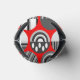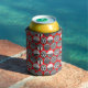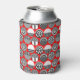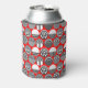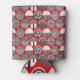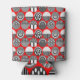 Diese kann kühler hat eine geometrische Design von Ovalen mit verschiedenen Mustern in grau in jeder Hälfte, alles auf einem Feld von rot.