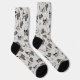 Diese lustigen femininen gotischen Socken werden von Nathalie Portet in schwarzer Tinte gezeichnet, mit skurrilen Schädeln und blütenrosa und cremefarbenen Rose und Spinnennetzen. Hellgrauer Hintergrund.