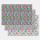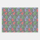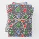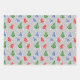 Graue, moderne abstrakte Weihnachtsbäume Urlaub Wrapping Paper Sheets. Jedes Blatt zeigt ein niedliches Muster von bunten Weihnachtsbäumen in Blau, Rot und Grün in verschiedenen Grautönen.
