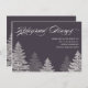 Holzkohle Grau und Weiß Moderne Elegant Winter Hochzeit Probe Dinner Einladung Karten mit Silhouette Bäumen. Passen Sie Ihre Daten an.