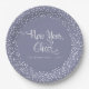 Graue Neujahrsschneeflocken-Skript für Weißschneef Pappteller