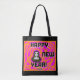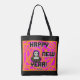 Sie können meinen Neujahrszeichn einer grauen Alien mit orangefarbenen und rosa Designs bewundern, in dem Text steht: "Frohes Neues Jahr!" Ich nenne das zeichnend, "Graue Neujahrswünsche", das überall auf der Tasche gedruckt wurde, um jemandem etwas zu wünschen: "Happy New Year".
