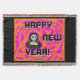 Sie können meinen Neujahrszeichn einer grauen Alien mit orangefarbenen und rosa Designs bewundern, in dem Text steht: "Frohes Neues Jahr!" Ich nenne das zeichnend, "Graue Neujahrswünsche", das auf dieser Wurfdecke hinzugefügt wurde, um jemandem etwas zu wünschen: "Happy New Year".