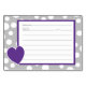 Fun polka-dot Muster in grau und dunkel lila mit Herz-bedruckten Rezeptorkarten, um unseren Bindemittel zu ergänzen. Ändern Sie die Hintergrundfarbe von grau in eine beliebige Farbe.