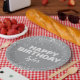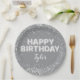 Graue und silberne Geburtstagsparty-Teller für ein lustiges Party mit einem modernen klassischen Look mit Glitzer- und Folienballons auf personalisierten Papier-Tellern.