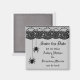 Dainty Spinnen und ein illustrierter Spitzen-Ränder-Akzent im Foto retten den Dattelmagneten; das ist perfekt für die Halloween Hochzeit.