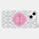 Graue und rosa moderne Trellis Custom Monogram Case-Mate iPhone 14 Hülle