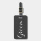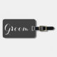Personalisierte Hochzeitsreisegepäck-Tag für Bräutigam. Elegant grau und schwarz mit weißem Skripttext-Design. Niedliche Geschenkidee für frische Weds auf Flitterwochen.