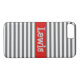 Sie werden überall Komplimente erhalten, wo Sie mit diesem Casemate-Handy-Fall gehen. Mit einem grauen und weißen gestreiften Design mit rot in der Mitte, Ihren Namen anpassen.