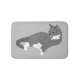 Graue und weiße Tuxedo Katze schlafend. Gezeichnet in Hommage an meine verstorbene Katze Spike.