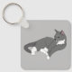Graue und weiße Tuxedo Katze Schlüsselanhänger