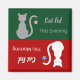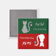 Eine Erinnerung, die Katze füttern und anderen lassen, weiß, dass die Katze gefüttert wurde. Drehen Sie einfach den Magneten um, wenn die Katze morgens oder im Abend gefüttert wurde. Auf der Abend-Seite ist eine graue Katze mit einem rosa Stern, der von ihrem Schwanz hängt. Auf der Morgenseite steht eine weiße Katze mit einem blauen Stern, der von ihrem Schwanz hängt. Der Hintergrund ist festlich grün und rot.