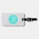 Grauer feiner Streifen mit Türkis-Monogramm Gepäckanhänger