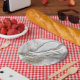 Grauer flüssiger Marmor - Perle und Gold Pappteller