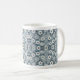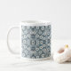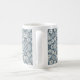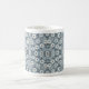 Diese Tasse hat einen grauen Hintergrund mit weißen Blumen.