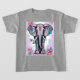 T-Shirt eines Kindes in einem Porträt eines niedlichen, grauen, indischen Elefanten, der mit rosa und türkisfarbenen Blume geschmückt und umgeben ist